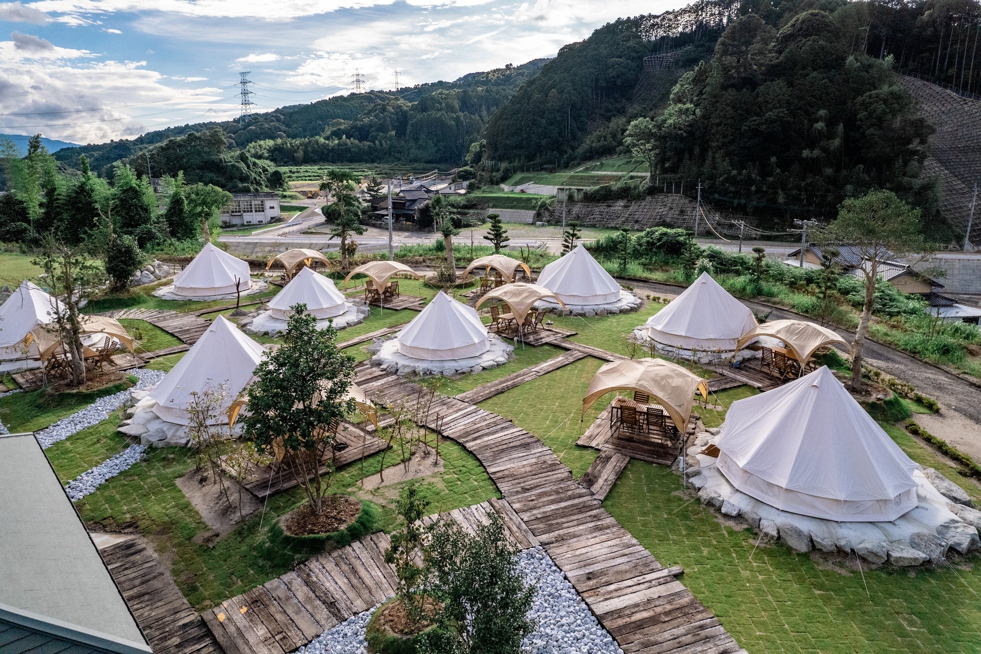 当施設は有限会社九州バーク運輸(本社:福岡県朝倉市杷木松末、代表:林晃一)を事業実施主体とし、全国24拠点でまちづくりを行う株式会社FoundingBase(本社:東京都世田谷区、代表:山本賢司)が運営サポートとして携わる、この地ならではの自然を活かしたグランピング施設として令和5年5月に開業いたしました。