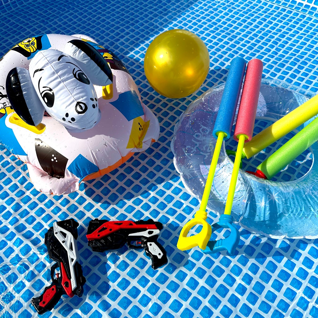 プールで利用できる浮き輪や水鉄砲といった水遊びグッズ。プール以外でのご利用ももちろん可能です。