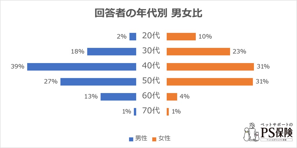 男性は40代が最も多く、30代~50代の年代に関しては男女共に全体の約8割を占めます。しかし、20代を見ると、女性が10%であるのに対し、同じ年代の男性は2%となり、また60代になると男性が13%であるのに対し、同じ年代の女性は4%と、傾向が逆転するという結果になりました。