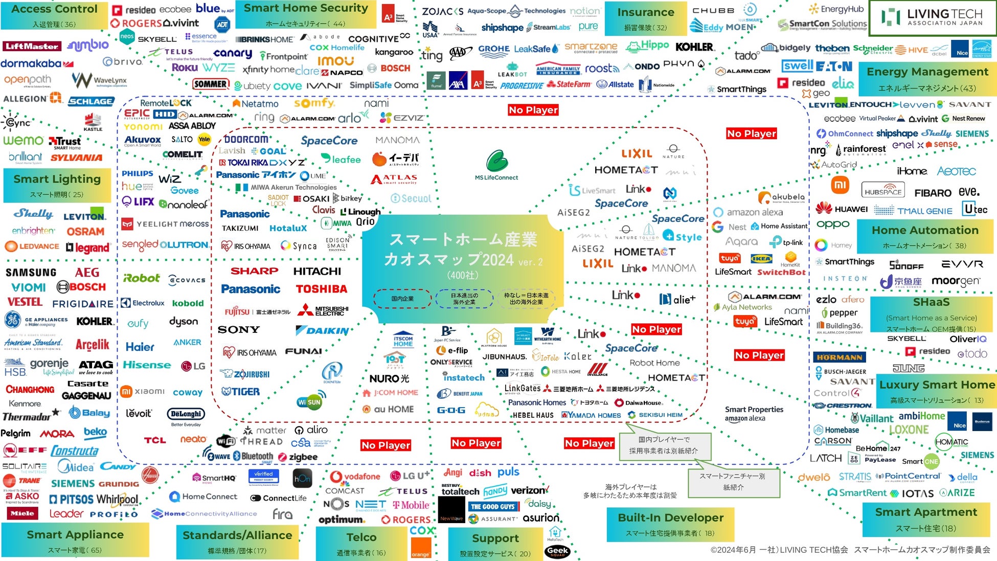 一般社団法人LIVING TECH協会(本社:東京都港区、代表理事︓⼭下 智弘・澤田 大輔、英語表記︓LIVING TECH ASSOCIATION JAPAN、以下 LIVING TECH協会)とスマートホームに関する事業開発のコンサルティングおよび伴走支援を行うX-HEMISTRY株式会社(本社:東京都豊島区、代表取締役:新貝 文将、以下 X-HEMISTRY)は、日本初の「スマートホームカオスマップ」の第2版をLIVING TECH協会公式ホームページ内の特設サイトで公開いたしました。