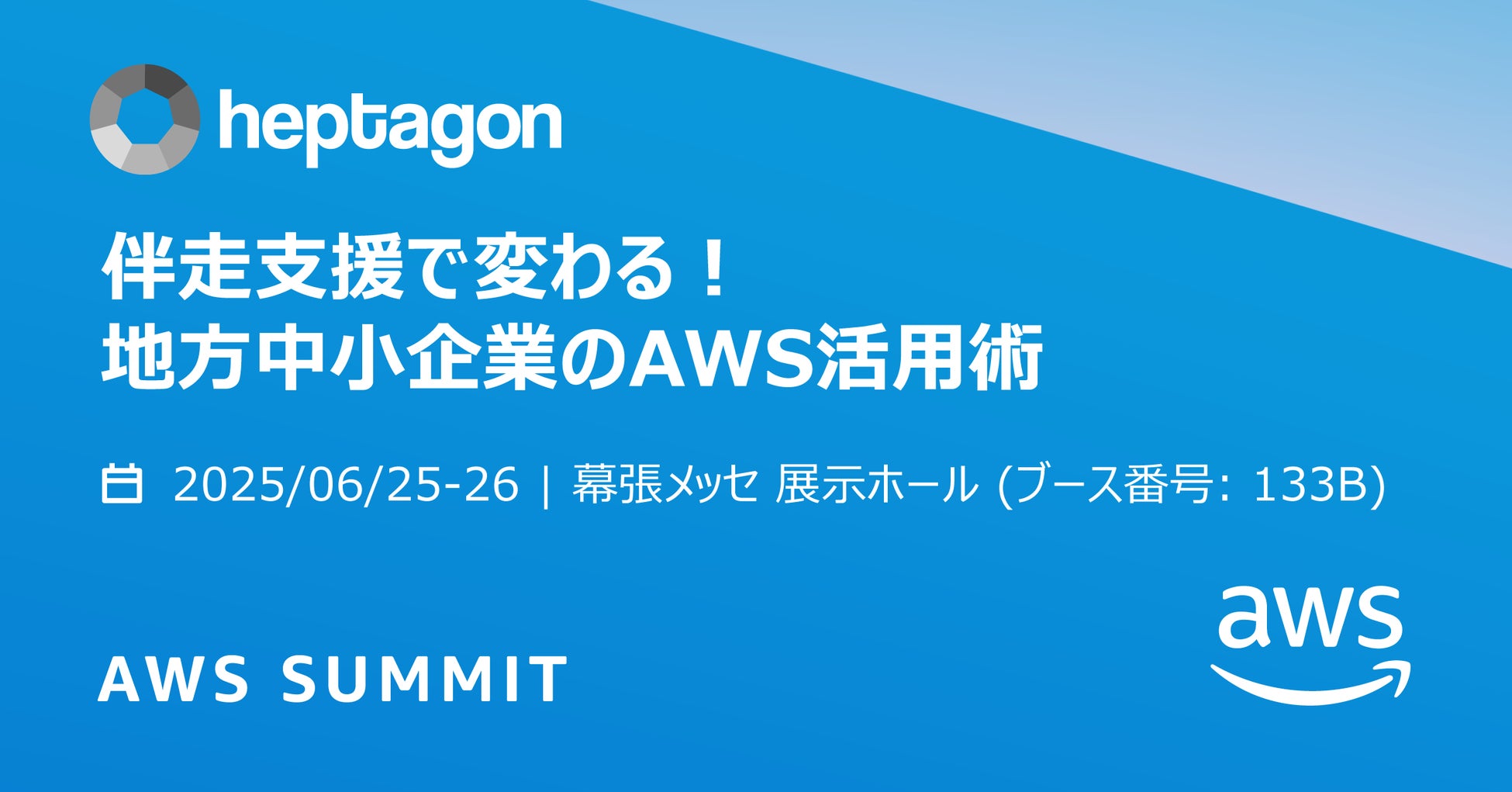 地域課題は地域企業が解決する「ビジネスの地産地消」のもと、青森を拠点に企業の事業開発・支援を行う株式会社ヘプタゴン (所在地:青森県三沢市、代表取締役社長:立花拓也、以下 ヘプタゴン) は、2025年6月25日(水)と26日(木) に幕張メッセにて開催される「AWS Summit Japan 2025」へBronzeスポンサーとして協賛、ブース出展いたします。