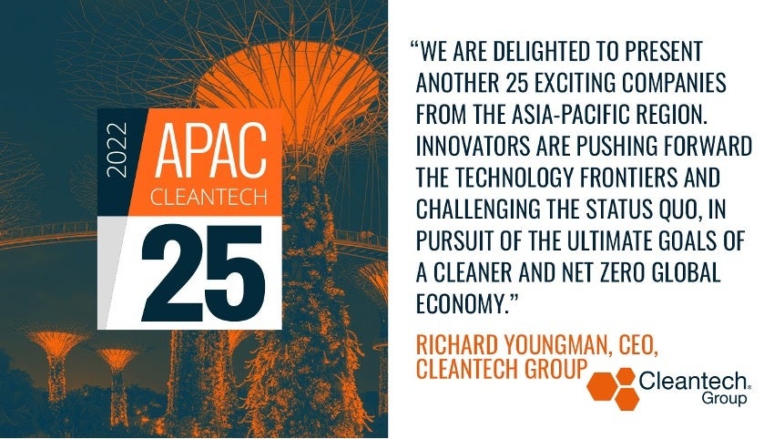 2022APAC Cleantech 25社のリストはこちらからご覧ください https://i3connect.com/apac25/the-list