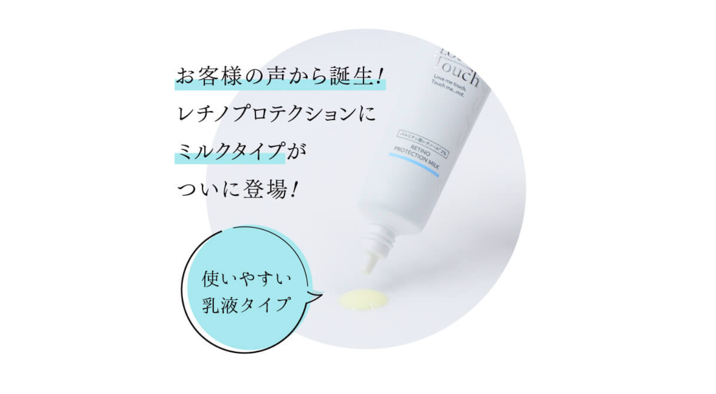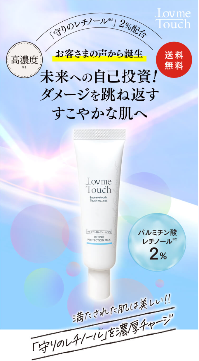Lov me Touch(ラブミータッチ)の人気製品『レチノプロテクションオイル』をより使いやすくしてほしい、というお客さまの声にお応えして、パルミチン酸レチノール*2を同じく2%配合した超高濃度*1乳液を作りました。