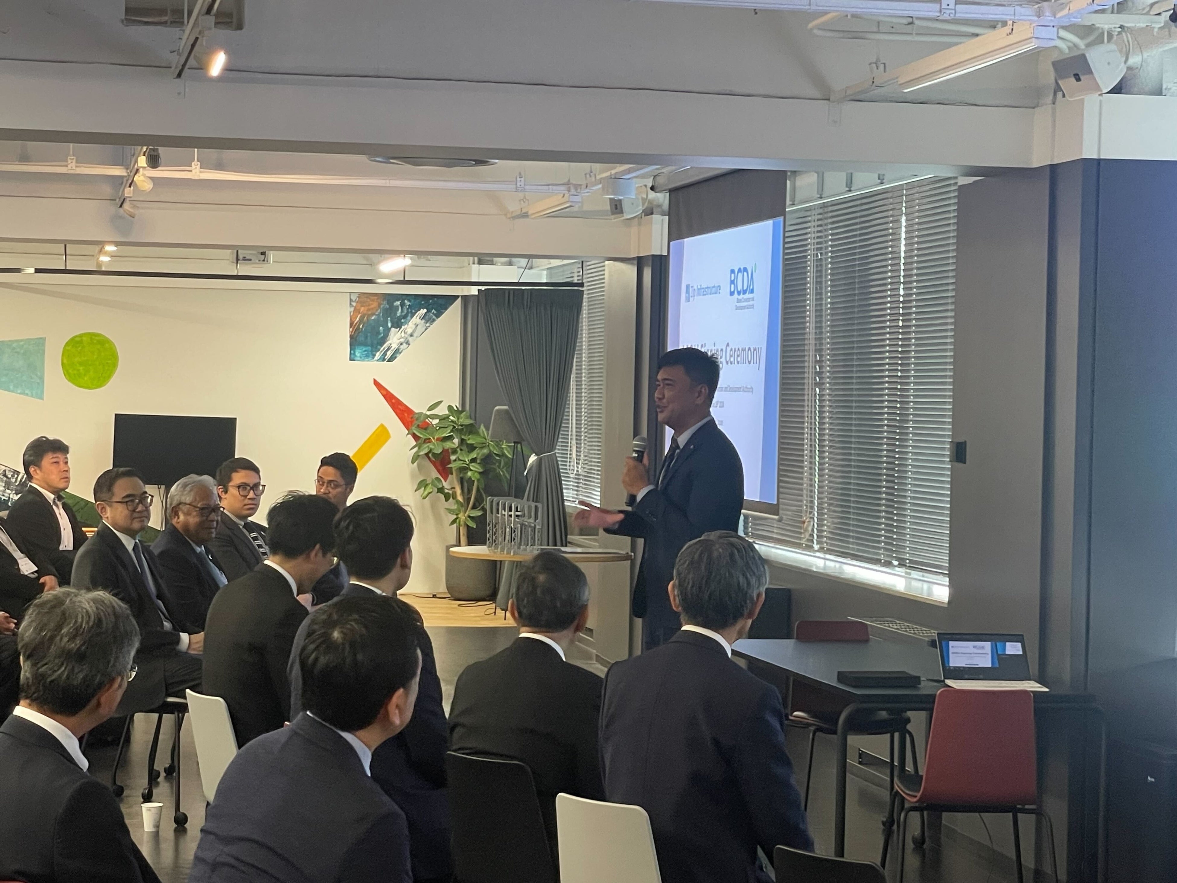 (BCDA Joshua Bingcang長官のスピーチの様子、NEXs Tokyoにて締結式を開催)
