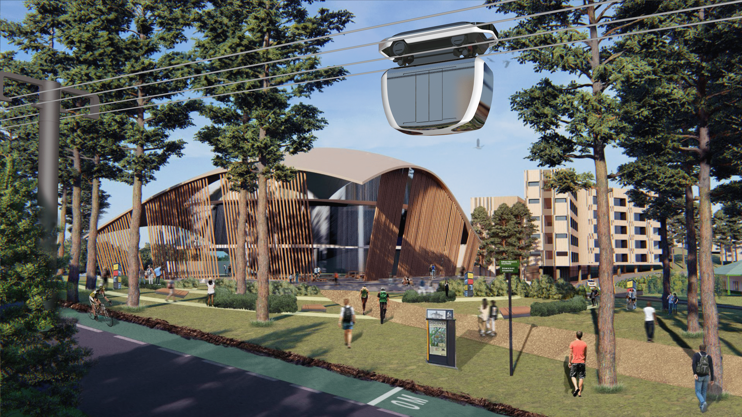 自走型ロープウェイ「Zippar」とは、ワイヤーケーブルが固定されており、その上をキャビンが自走し、カーブと分岐が可能になり道路上に建設できるようになった次世代型ロープウェイです。