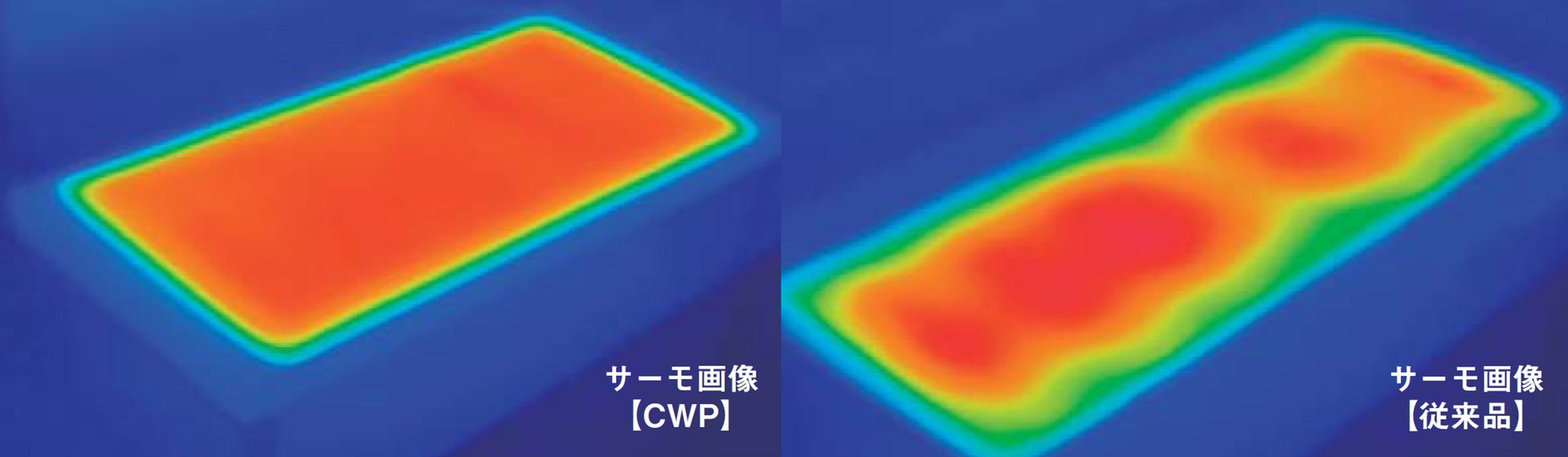 ・従来のウォーマーは、内部にあるヒーターで天板を温める形式が多く、加熱ムラがありました。本製品はヒーターガラスに蒸着された膜が面全体で発熱するため、場所による温度ムラがほとんどなく、置いた料理を均一に保温いたします。温度は65℃、75℃、85℃の3段階で調整可能です。