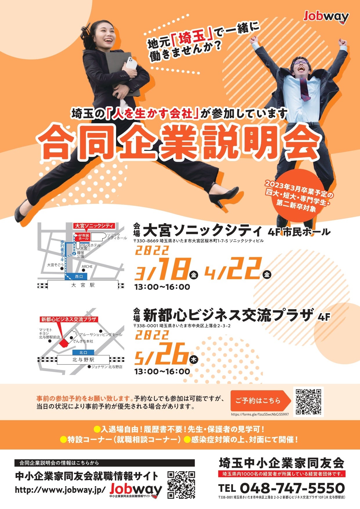 埼玉県の優良企業15社による合同企業説明会(主催:埼玉中小企業家同友会)が株式会社シンミドウの協力でソニックシティ にて開催されます。