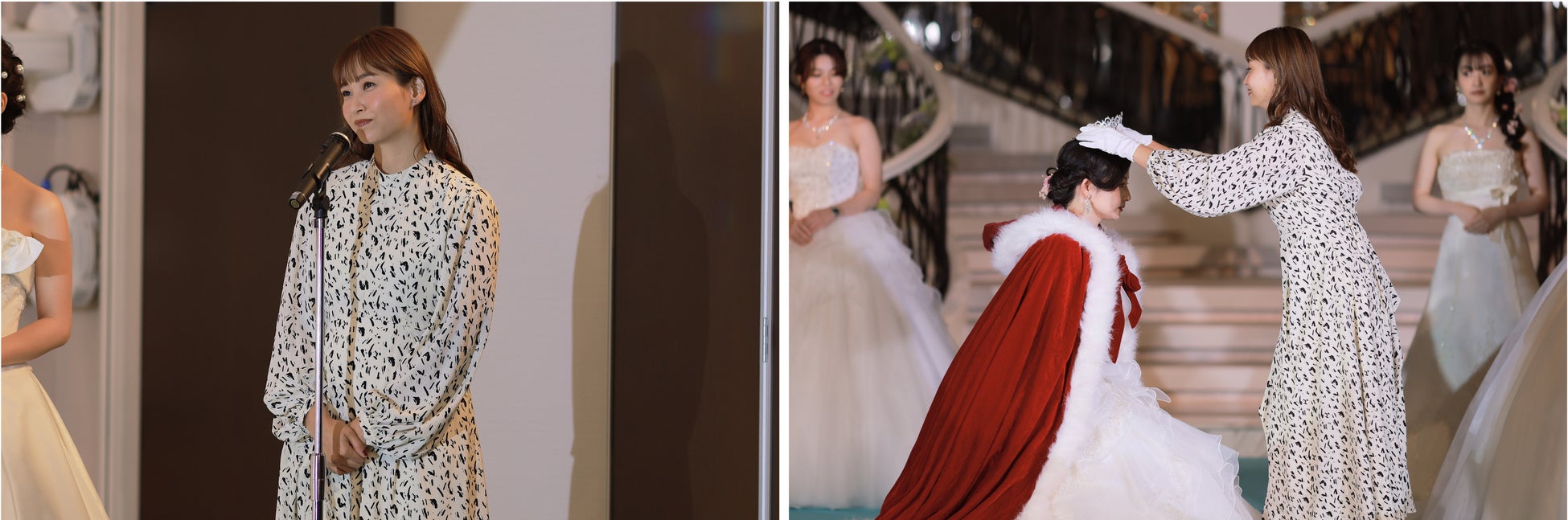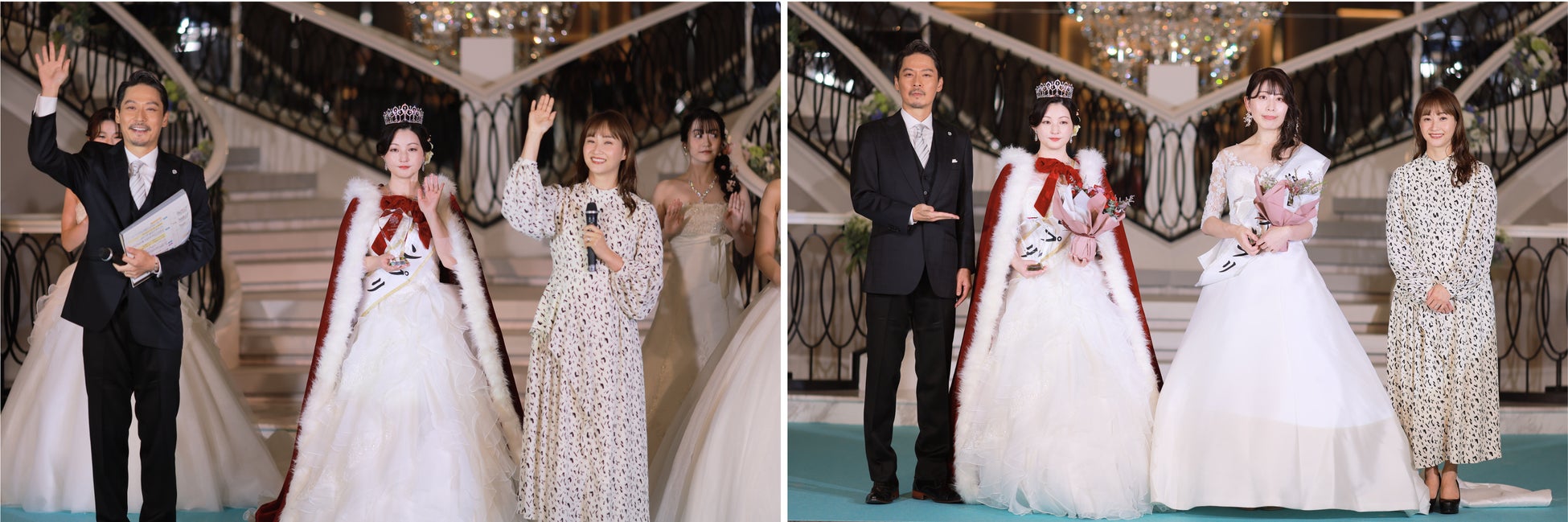 ファイナリスト12名はウェディングドレスを着て登場。華やかな雰囲気のなか受賞者の発表が行われ、エントリー総数1万5000名の出場者のなかから、見事、凛さんがグランプリに輝きました。