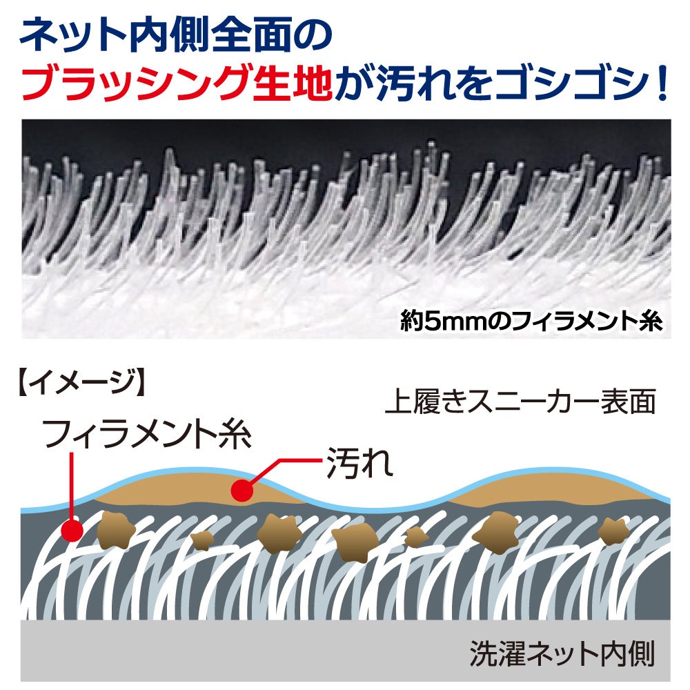 ネット内側全面がブラッシング生地になっているので洗濯機の中で汚れをゴシゴシ!