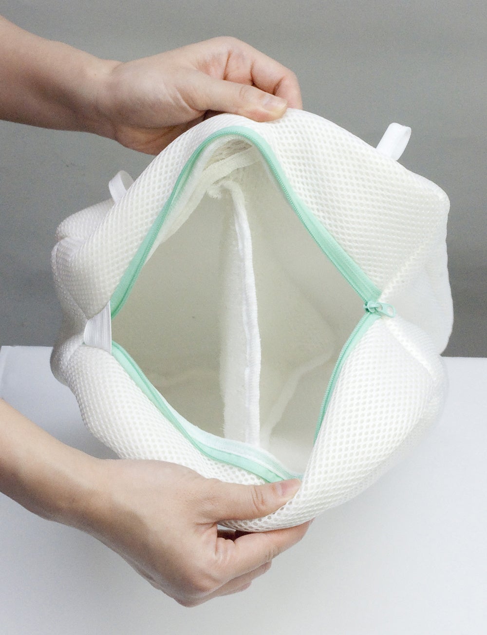 この洗濯ネットにシューズを入れて、洗濯機にポイッとするだけ。