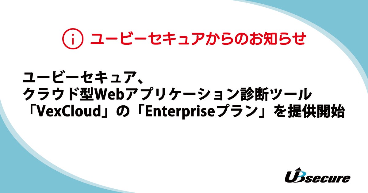 ユービーセキュア、クラウド型Webアプリケーション診断ツール「VexCloud」の「Enterpriseプラン」を提供開始