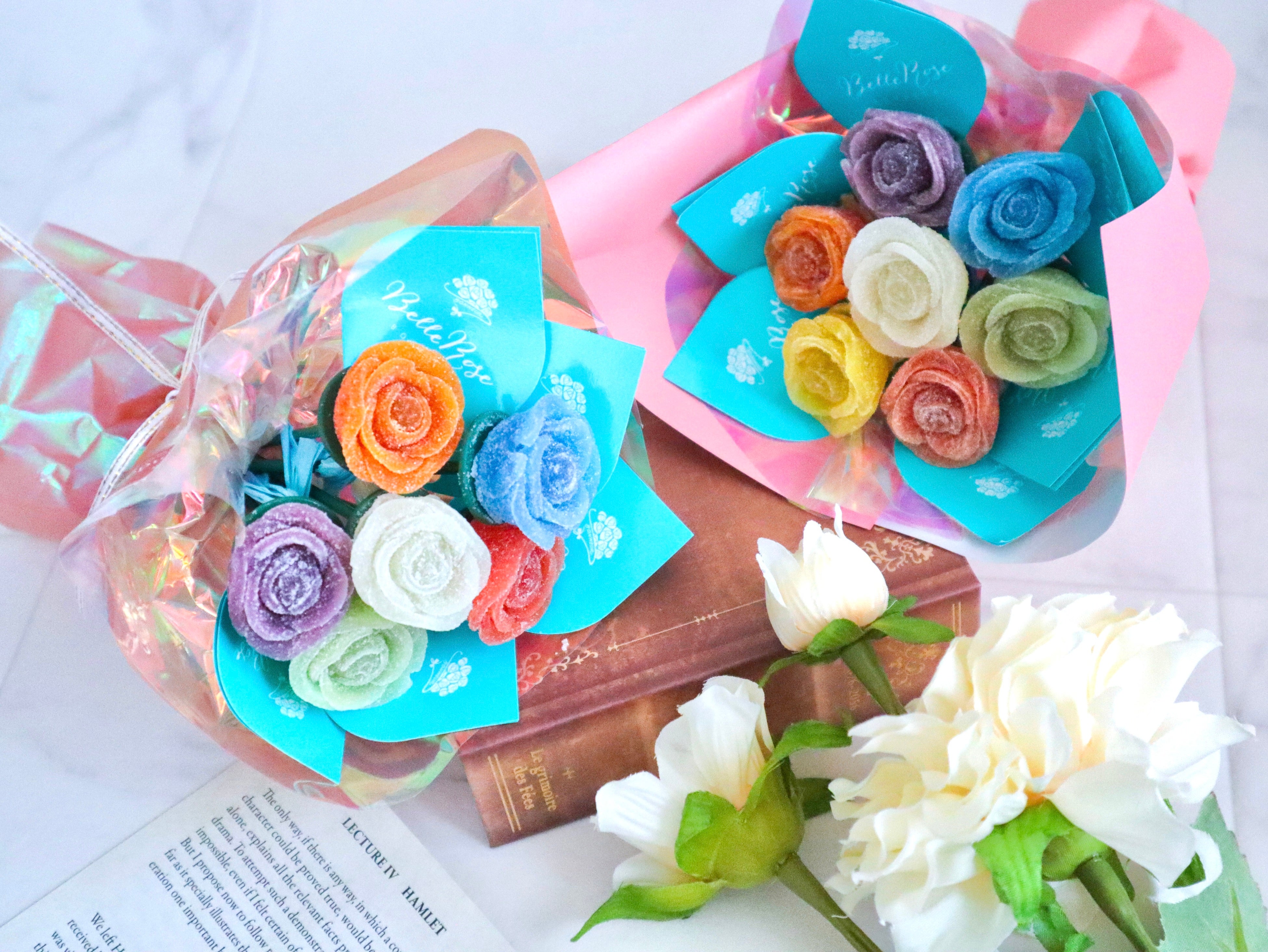 ぜひお花屋さんが作るカラフルで美しいバラのグミで笑顔溢れるひとときをお楽しみください。