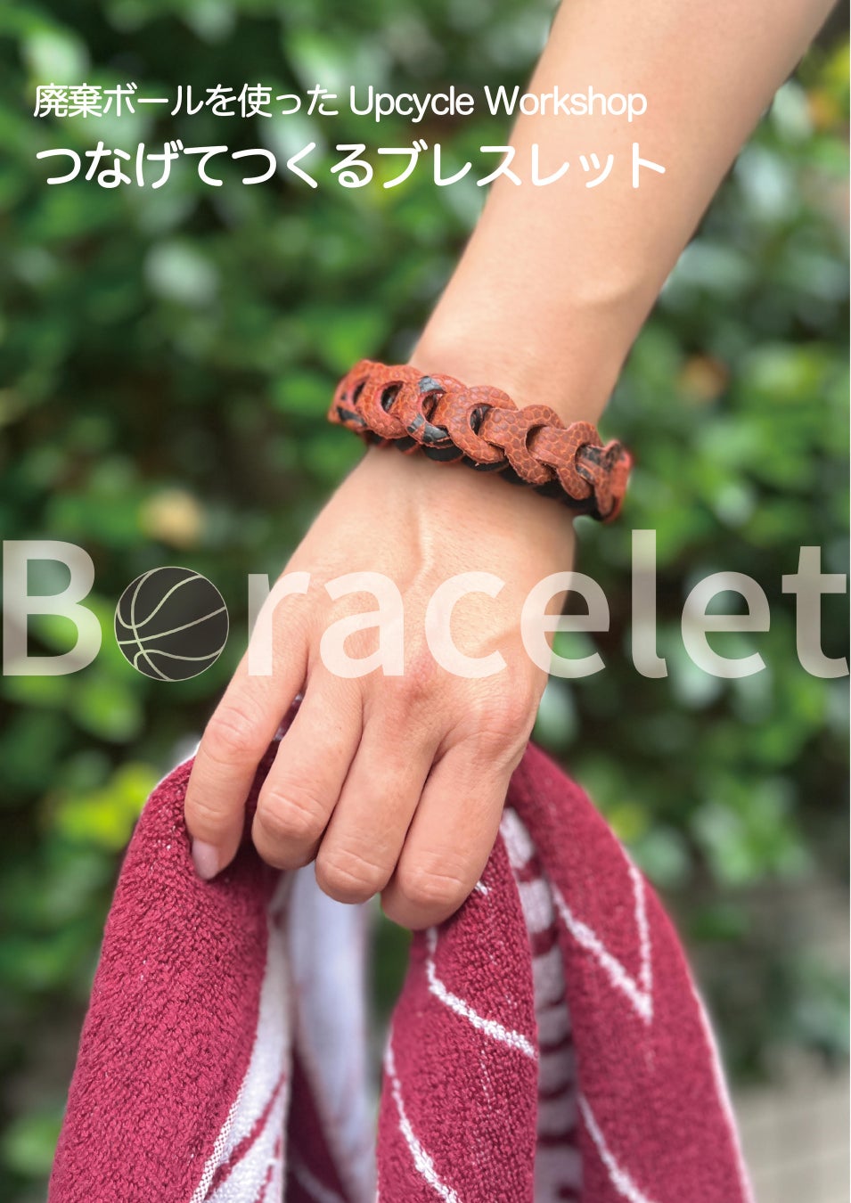 実際に使用されていた使えなくなったボールを解体し、小さなパーツを繋げてオリジナルブレスレットを作成します。金具の色は2色から選べ、チャームには模様やイニシャル、背番号を刻印することも可能です。Upcycleの楽しさを学ぼう!