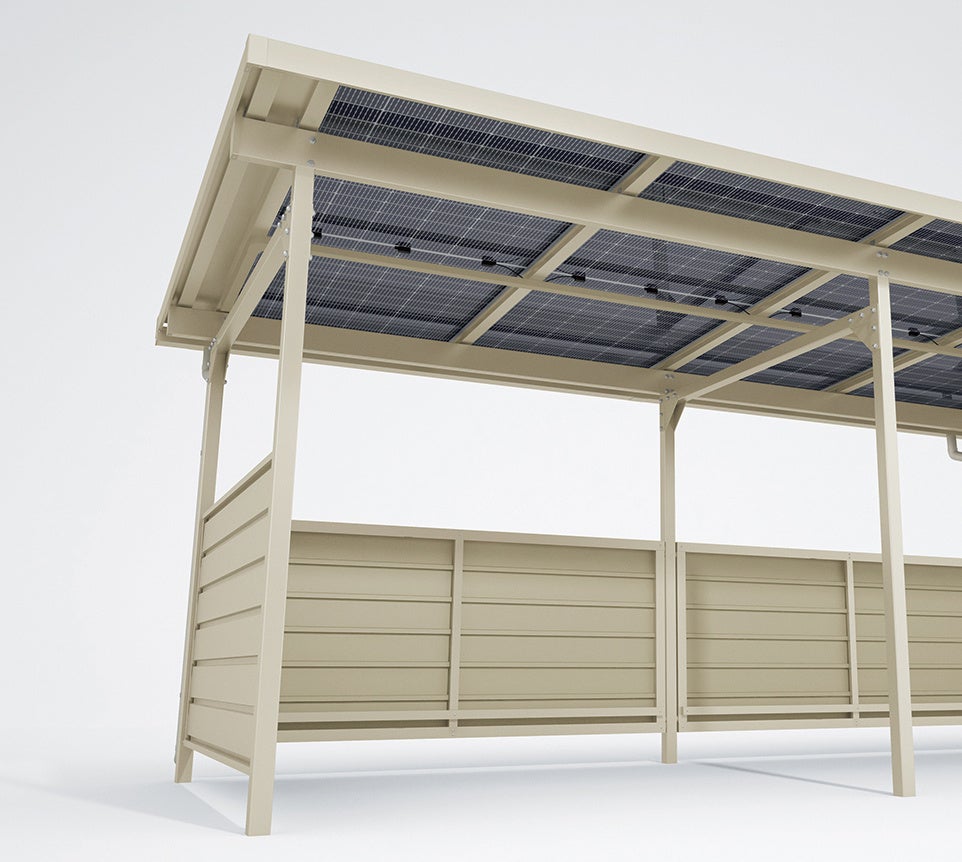 太陽電池モジュールと駐輪場屋根が一体型設計のため、屋根と太陽電池モジュールを別々に取り付ける