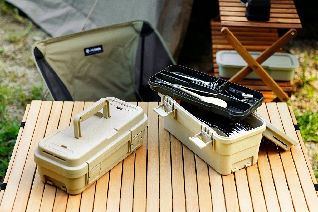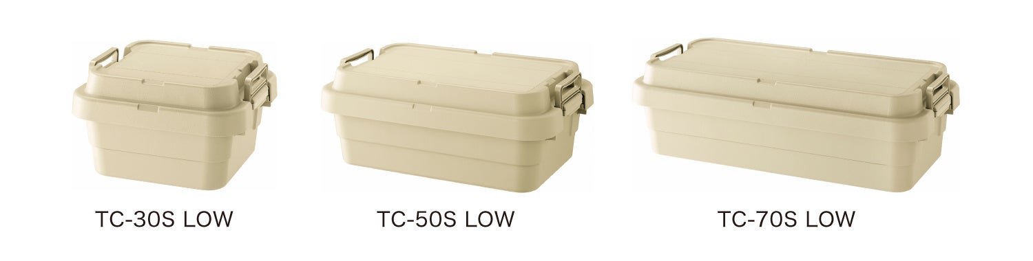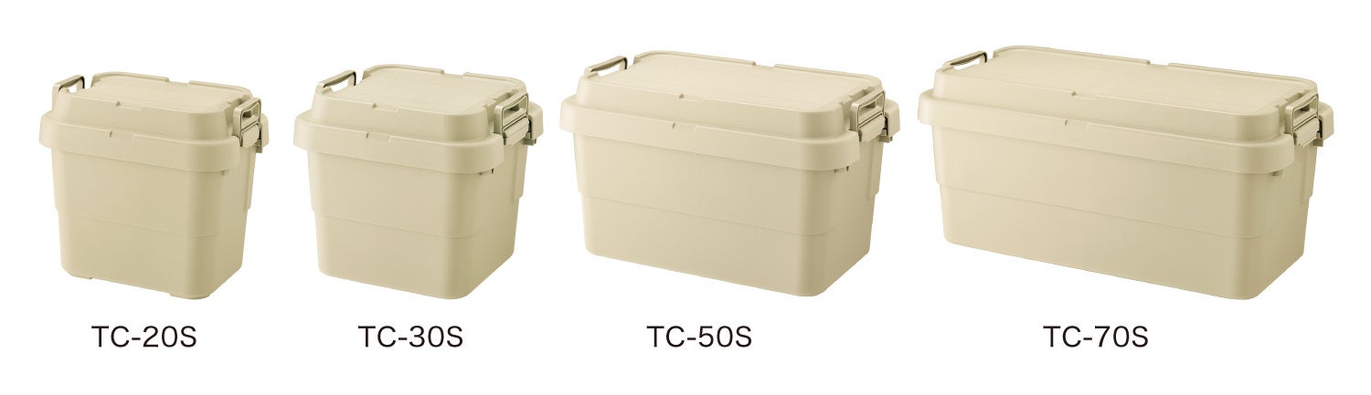 シンプル・無骨なデザインで使い勝手が良いとキャンパーに人気のキャンプ収納「トランクカーゴ」シリーズ。この度、現行カラーのグリーン・ブラック・グレーに加えて新しく定番カラーとしてベージュを発売いたします。