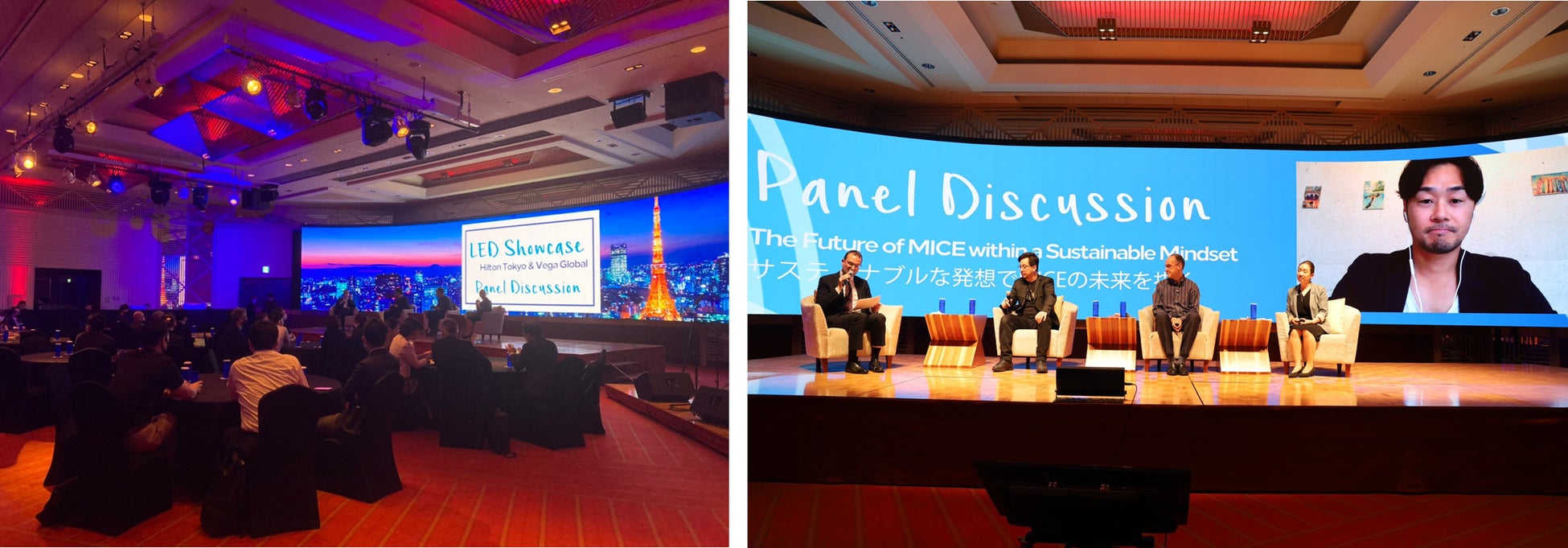5名によるパネルディスカッションは今回のヒルトン東京×ベガグローバルの取り組みについて有意性を示す内容となり、LEDウォールやバーチャルスタジオを活用したサスティナブルな今後のビジネス・会議形態について、未来を見据えた展望についての議論の場となりました。