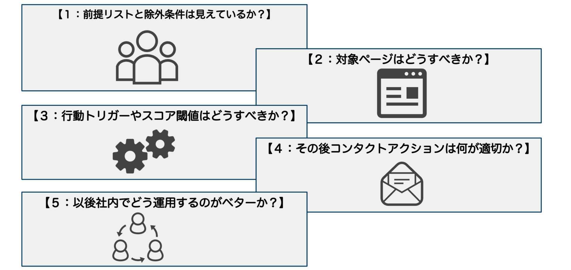 具体的には、特定のページに対する自動スコアリング、SAL要件、自動シーケンス設計、その後のセールス/インサイドセールスへのアポイント振り分けなど。一定の知識が必要になると共に、設計最適化のアクション、ステークホルダーとの連携が一定発生いたします。