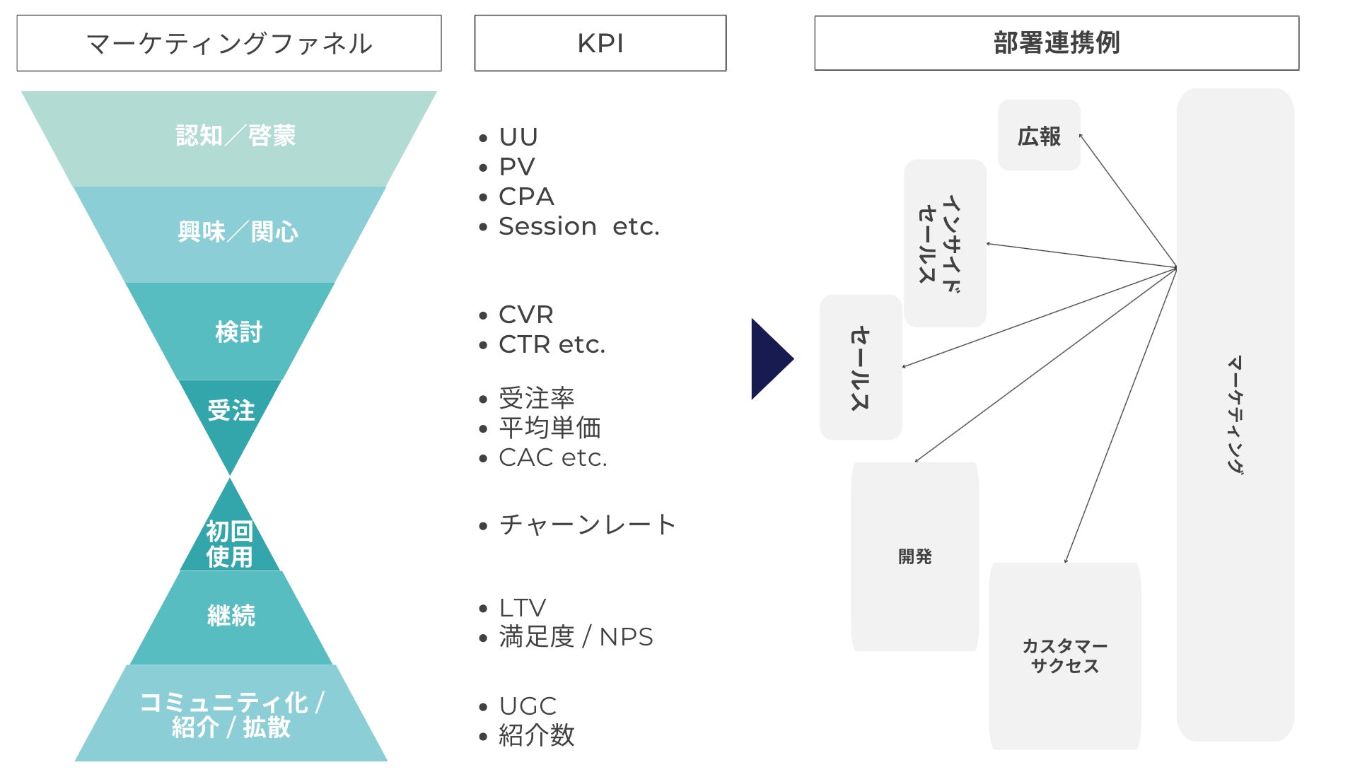 上の俯瞰に対して、ツールの機能要件やカスタマーサクセスツールやMA&SFAなどのデータ連携仕様がずれていると、ツールの二重管理で余計に工数が増えたり、最悪リプレイスとなり大幅な工数増となることが多いです。