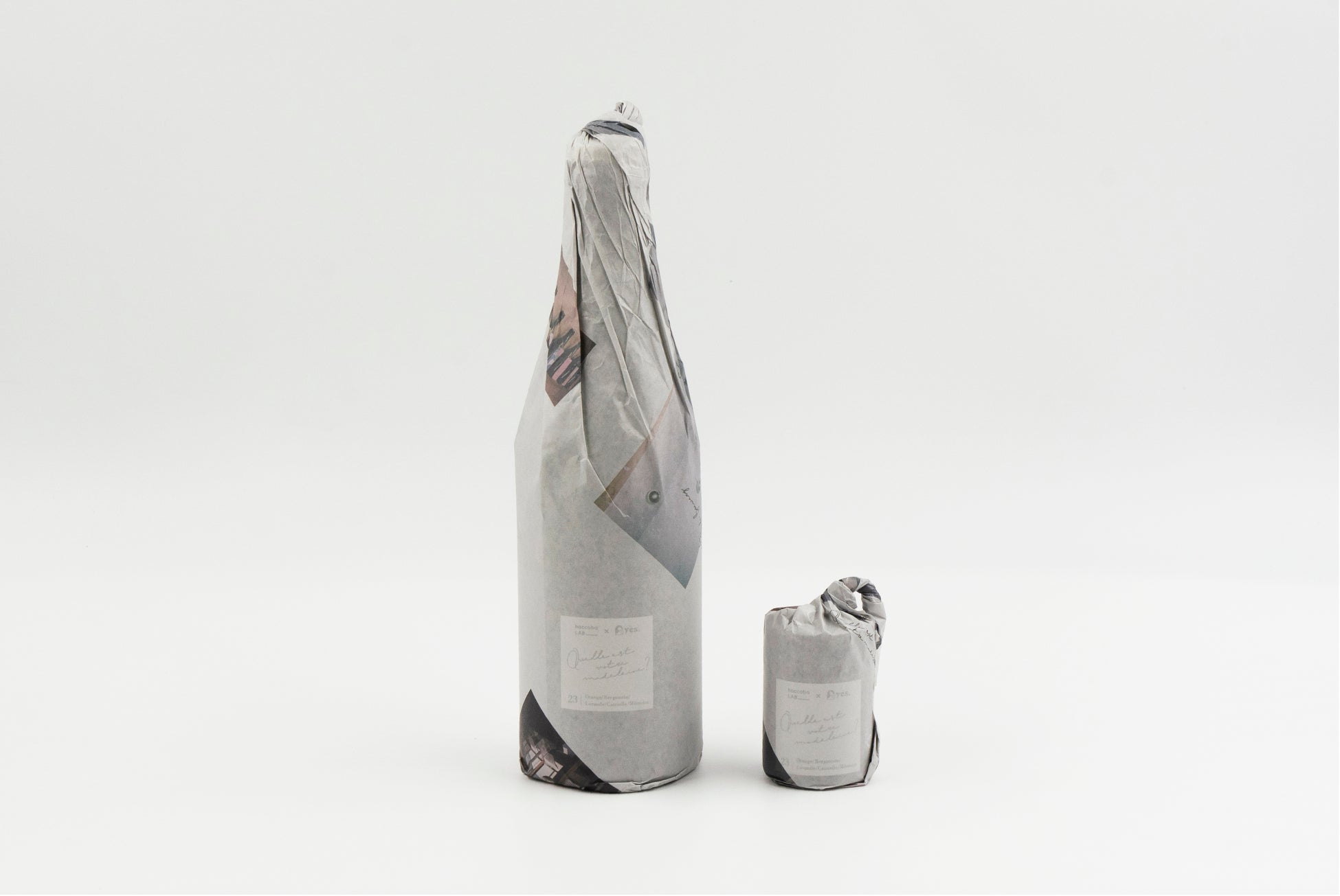 香りのブランド「fragrance yes」とコラボ。同じ素材をつかったお酒とキャンドル「Quelle est votre madeleine?」を同時制作。haccobaより4月20日発売。