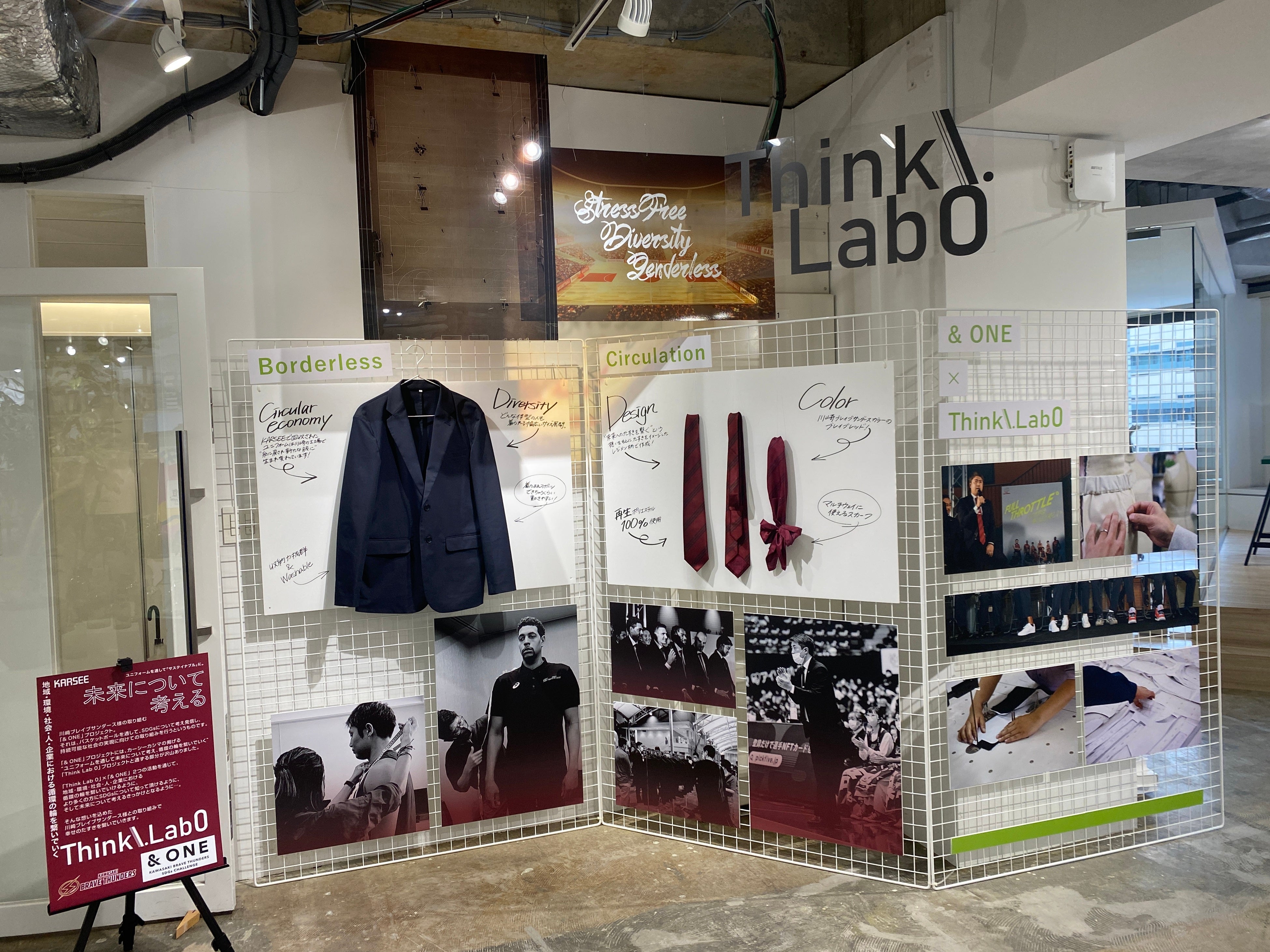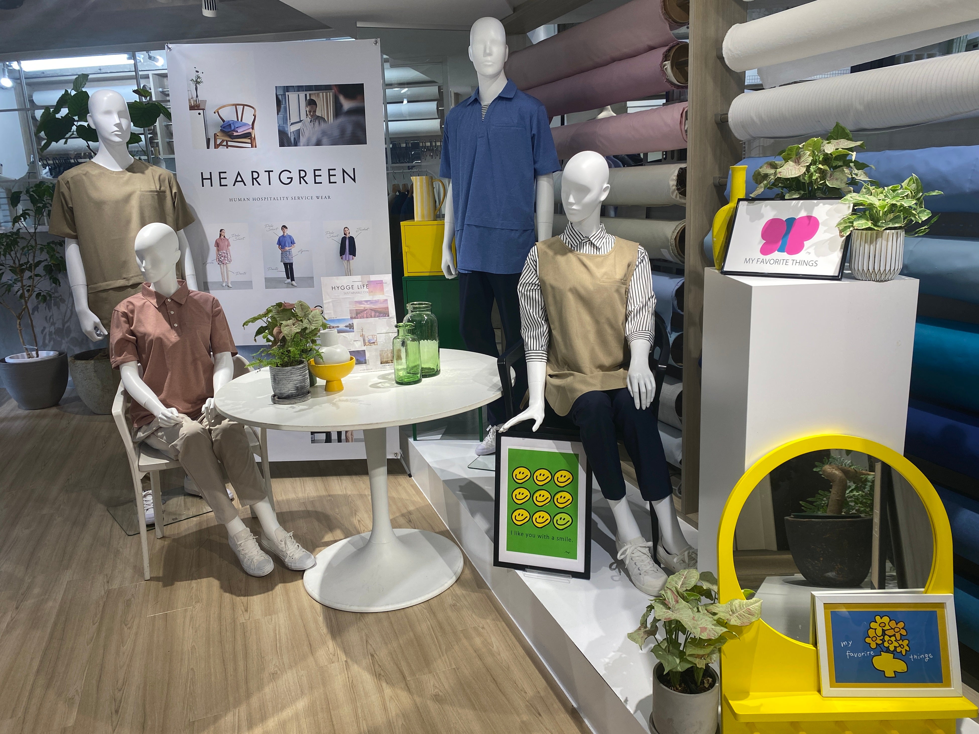 また、カラーアイテムも数多く展示しており、彩られたユニフォームを着用する事で、明るくコミュニケーションが取れるようにという思いが込められています。