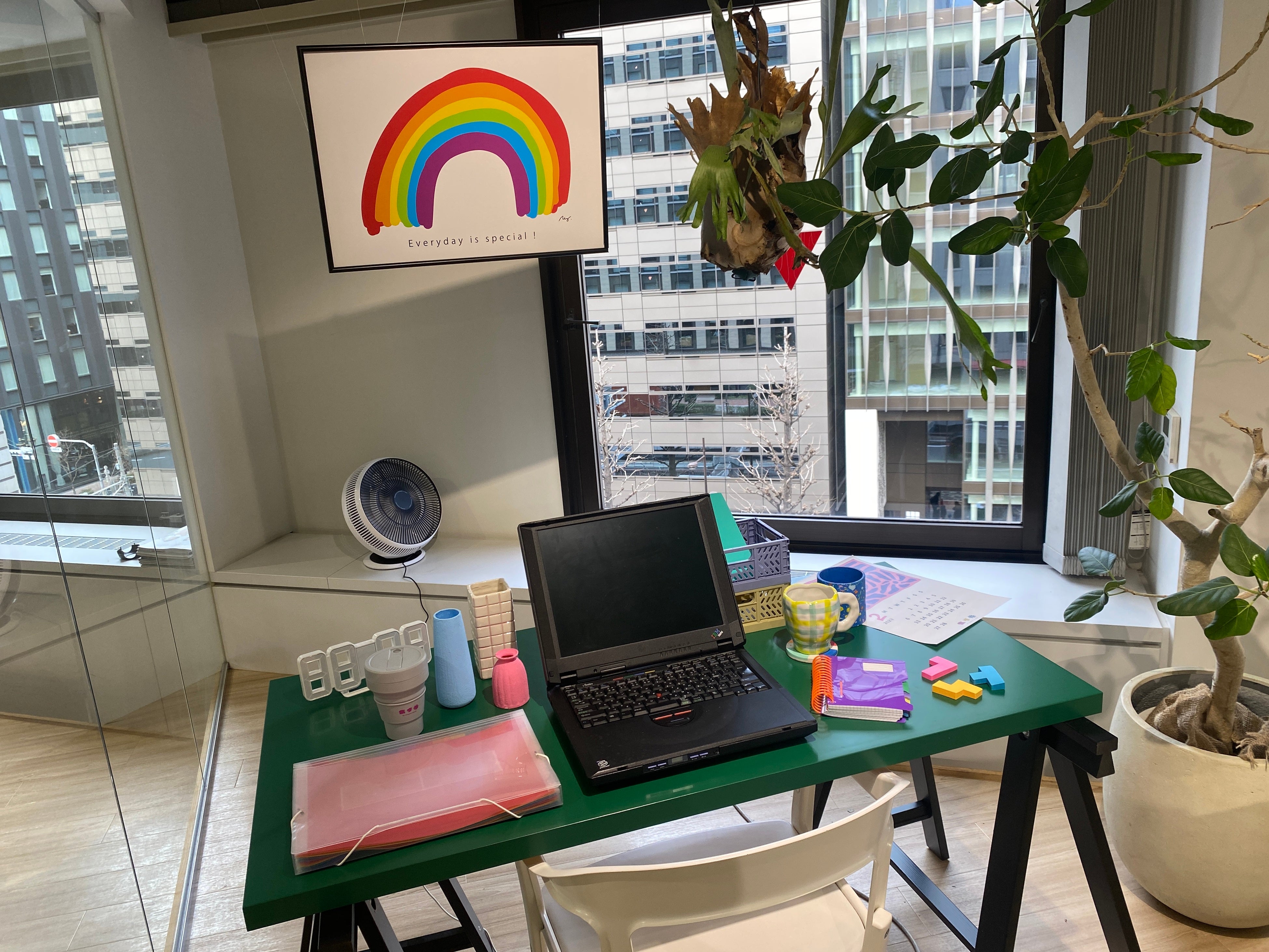 色を通してオフィスを彩り、日常をときめかせるディスプレイになっています。