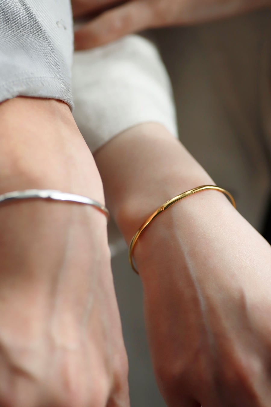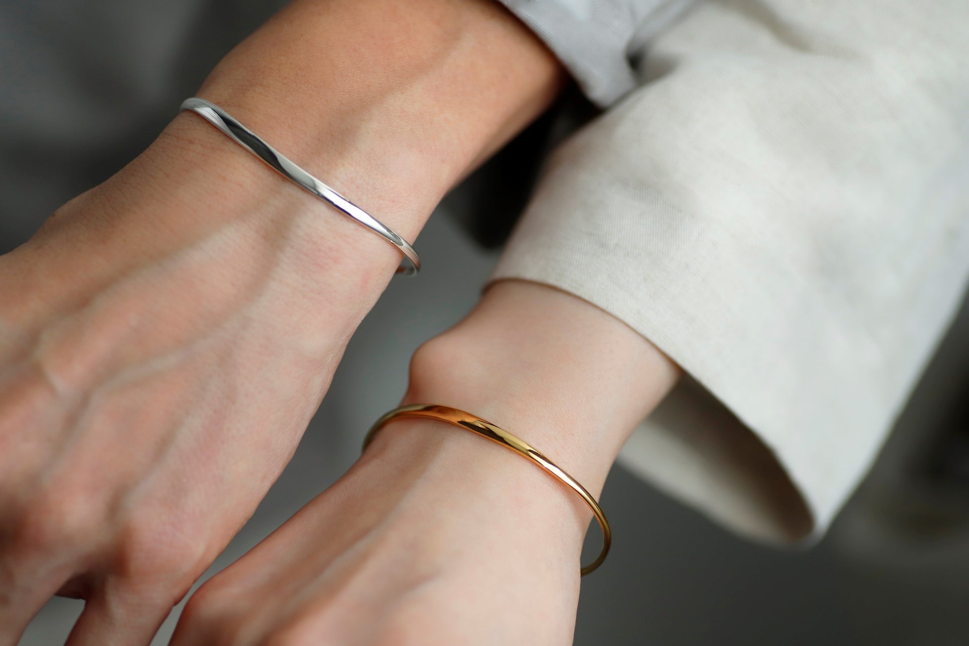 洗練されたデザインで年齢を問わず着けられるバングルは、記念日のプレゼントにぴったり。サイズ選びの心配がないのもバングルならではの魅力です。