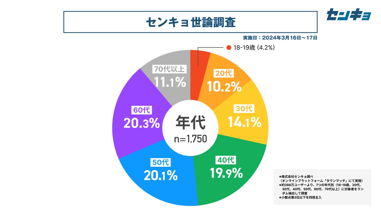 なお、調査結果については、①「タウンマッチ」が全国の各市区町村に人口比で概ね2~4%のユーザーを抱えていて、その分布が実際の地域別人口比と大きく変わらないこと、②できるだけ結果の透明性を守り、見ていただいた皆様に評価を委ねたいという考えから、ありのままを公開しています。弊社の運営する「タウンマッチ」では、従来の世論調査ではなかなかサンプル数の確保自体が難しかった10代20代などの若年層についても、他の年代と遜色ないサンプル数の確保が可能となっています。このため、弊社の調査は「より現実に近い」結果を提供できるポテンシャルがあると考えております。