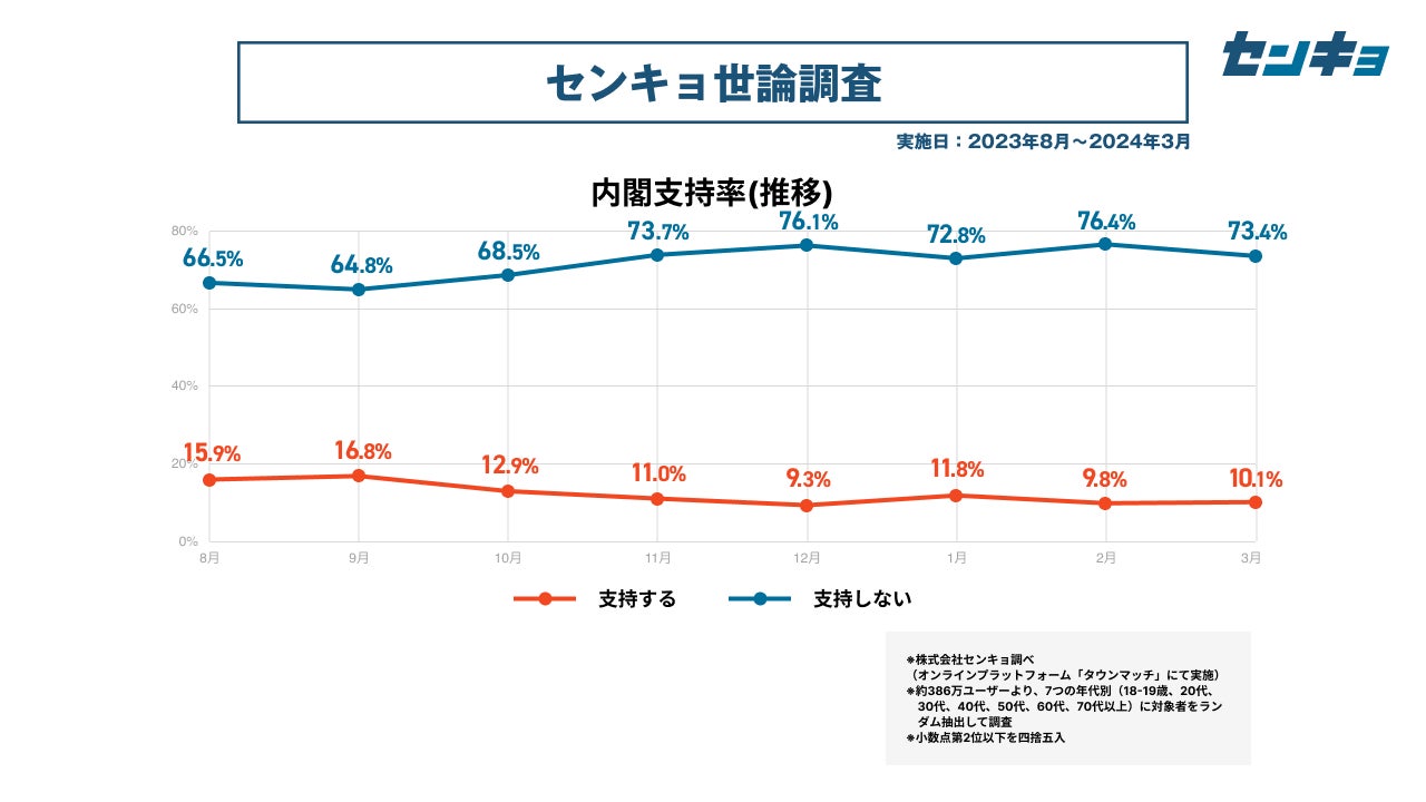 【株式会社センキョ】タウンマッチ定期世論調査、3月の内閣支持率は10.1%