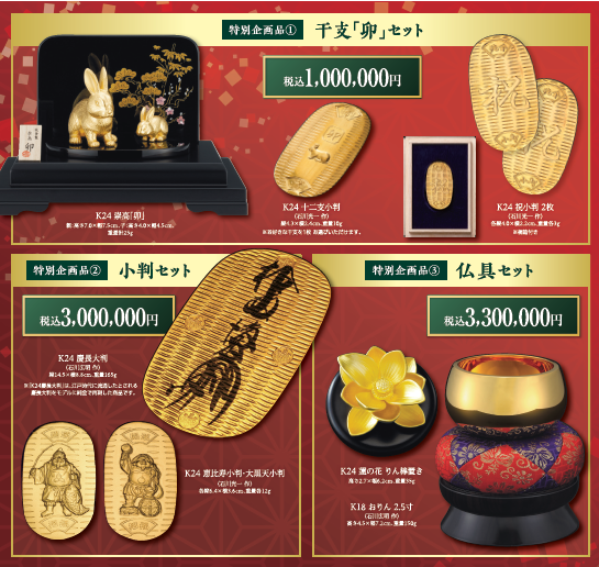 人気の小判、仏具に、縁起物の干支「卯」の商品を組み合わせた特別なセット品をご用意。新年ならではのお買い得な企画となっております。