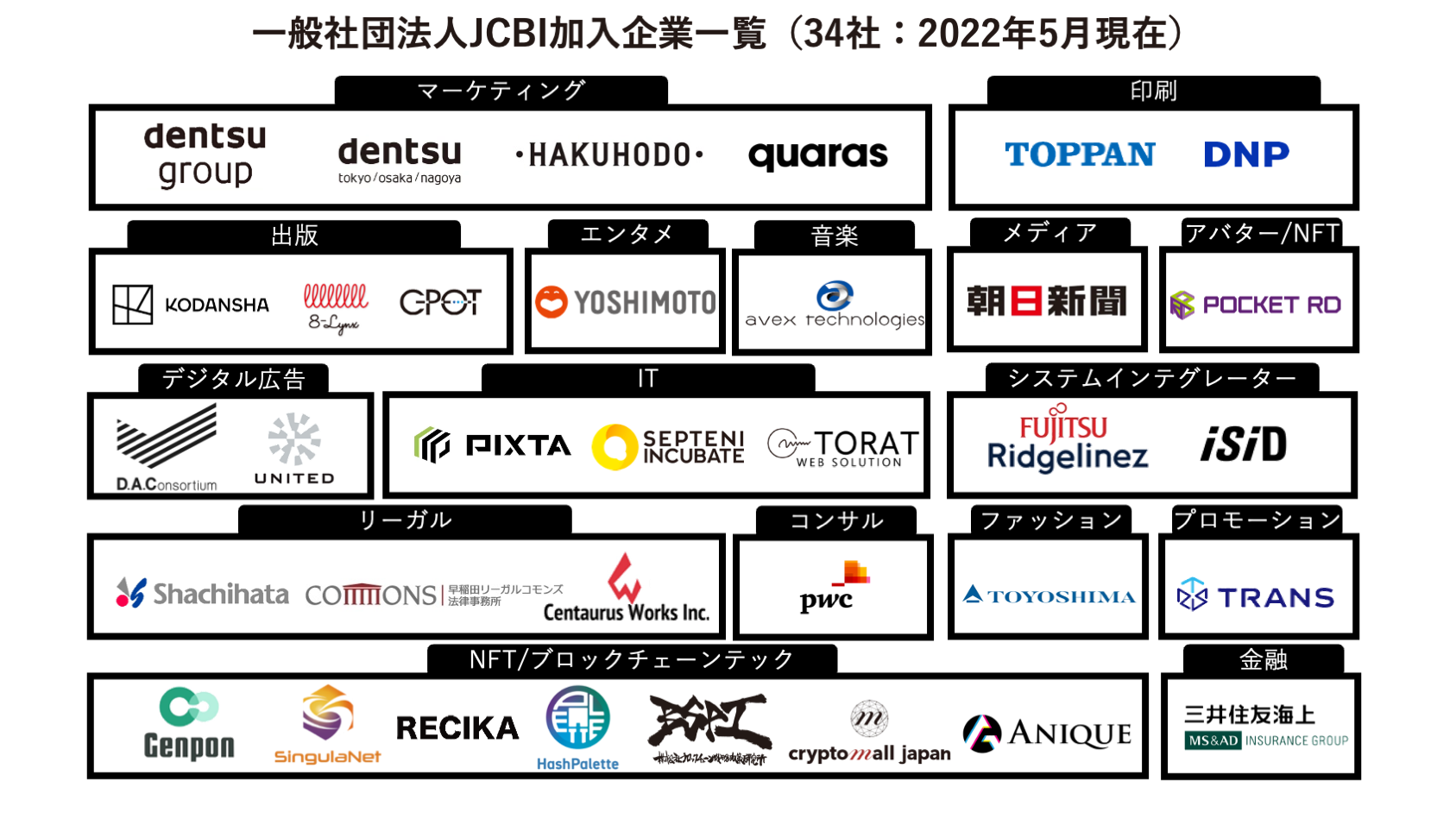 株式会社講談社(東京都文京区、代表取締役社長:野間省伸)、吉本興業株式会社(大阪府大阪市中央区、代表取締役社長:岡本昭彦)、豊島株式会社(愛知県名古屋市中区、代表取締役社長:豊島半七)、早稲田リーガルコモンズ法律事務所(東京都千代田区、代表弁護士:河﨑健一郎)、株式会社ブロックチェーン戦略政策研究所(東京都千代田区、代表取締役:樋田桂一)、Anique株式会社(東京都渋谷区、代表取締役:中村太一)、cryptomall japan株式会社(東京都港区、代表取締役:須江剛)、デジタル・アドバタイジング・コンソーシアム株式会社(東京都渋谷区、代表取締役社長 執行役員CEO兼CCO:田中雄三)の8社が、新たに一般社団法人ジャパン・コンテンツ・ブロックチェーン・イニシアティブ(一般社団法人Japan Contents Blockchain Initiative・略称、一般社団法人JCBI)に入会いたしましたのでお知らせさせていただきます。