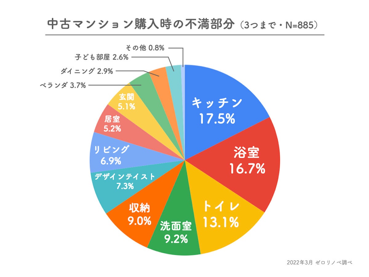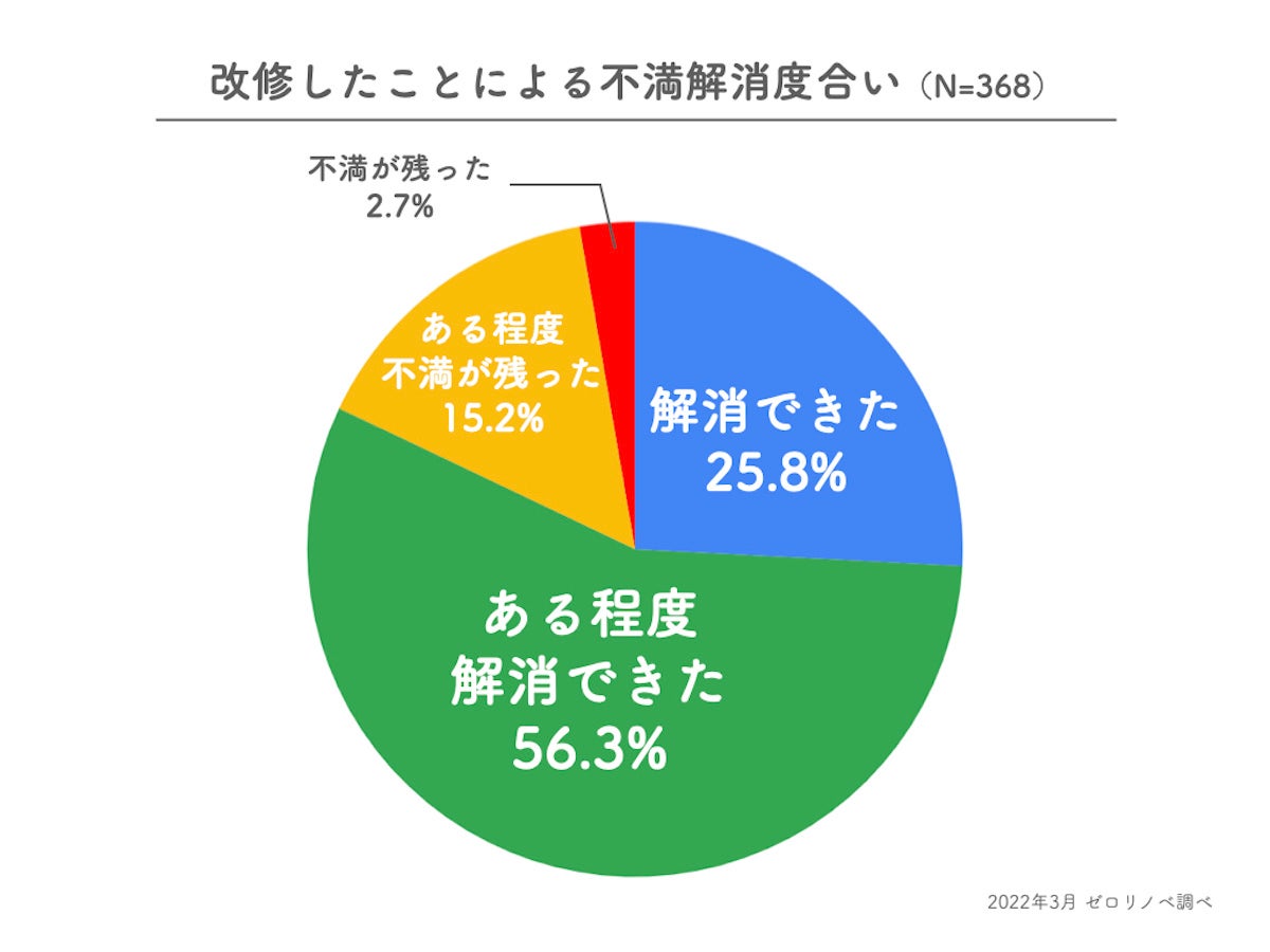 【失敗・トラブルを回避】中古マンション購入とリフォーム・リノベーション経験者に聞いた、購入時の不満部分/実際に改修した部分/不満の解消度合いに関するアンケート調査結果。