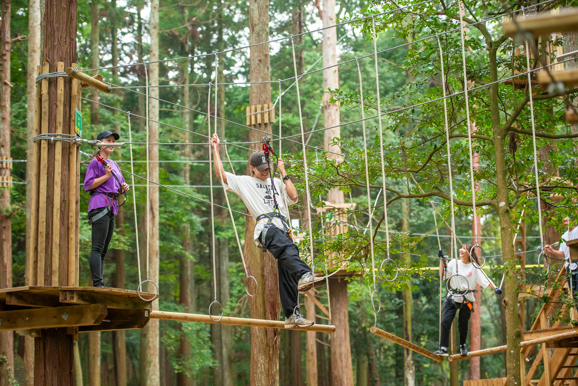 「フォレストアドベンチャー」は、フランス発祥の自然共生型アウトドア施設。欧州基準の安全器具を身に着け、森の立木を活かした樹上コースを自らの力で進んでいく体験型アクティビティはまさに“本気の冒険”。