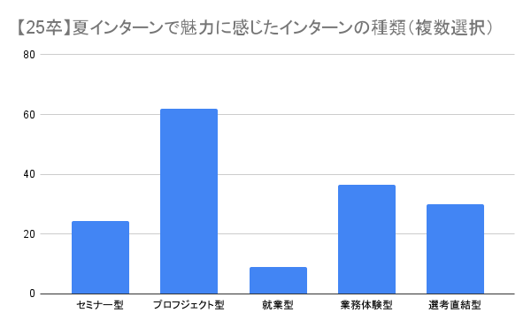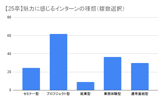 一番魅力的に感じたのはプロジェクト型、次いで業務体験型であることが分かりました。