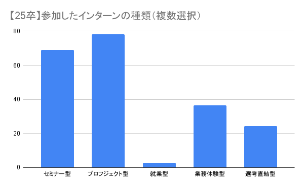 プロジェクト型や業務体験型のように、文章を読んだだけでは得られない、自分が実際に体験することで得られる情報やスキルを知りたいから参加しているという見方も見れます。