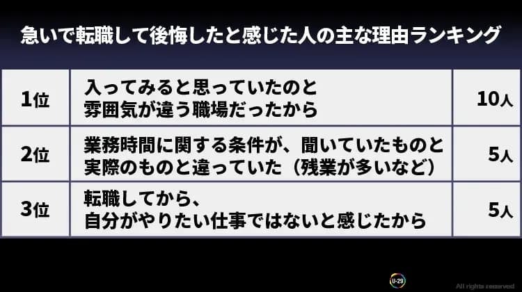 急いで転職して後悔したと感じた人の主な理由ランキング