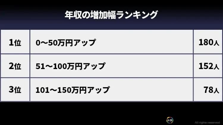 「101万円~150万円アップ」が78人と少なくない人数である。