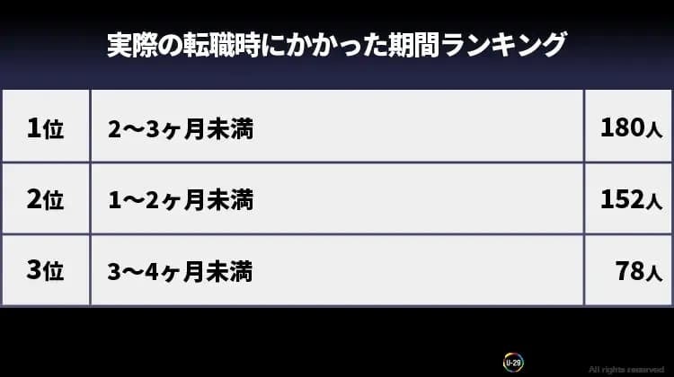 1位と合わせると3ヶ月未満で転職を決めている人が多いことがわかる。