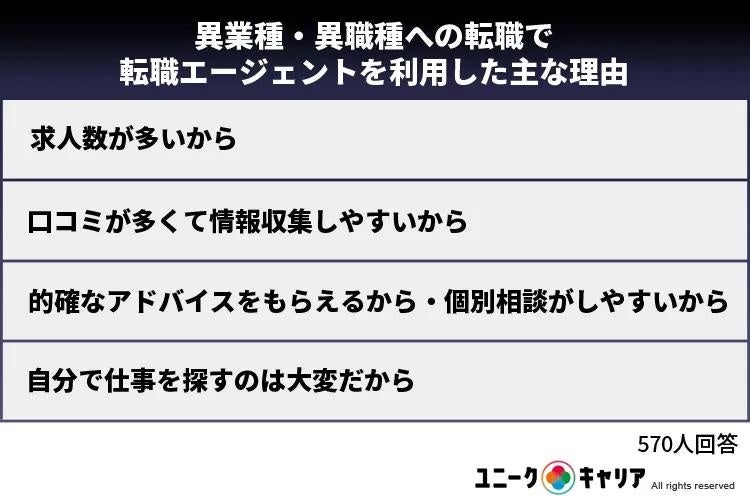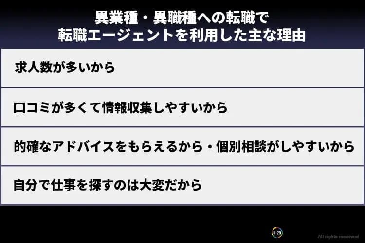 異業種・異職種への転職で転職エージェントを利用した理由として表のような内容があがった。