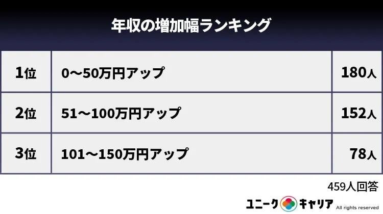459人のうち「0~50万円アップ」が180人と最も多かった。