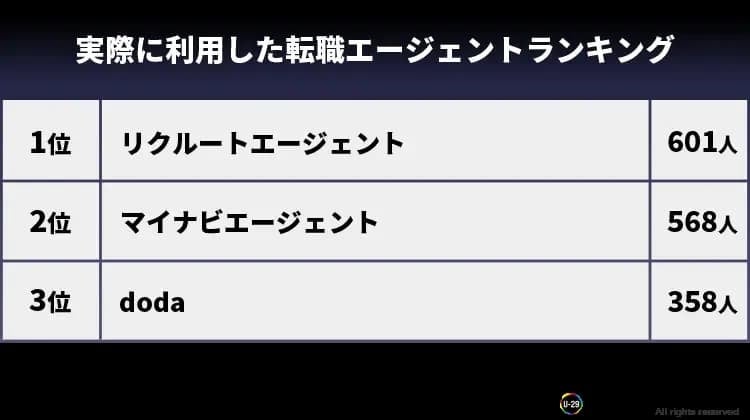実際に利用された転職サイトの中で最も多いことがわかった。