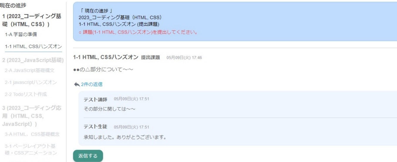 ①受講生と講師のやり取りをスムーズに、チャット機能追加