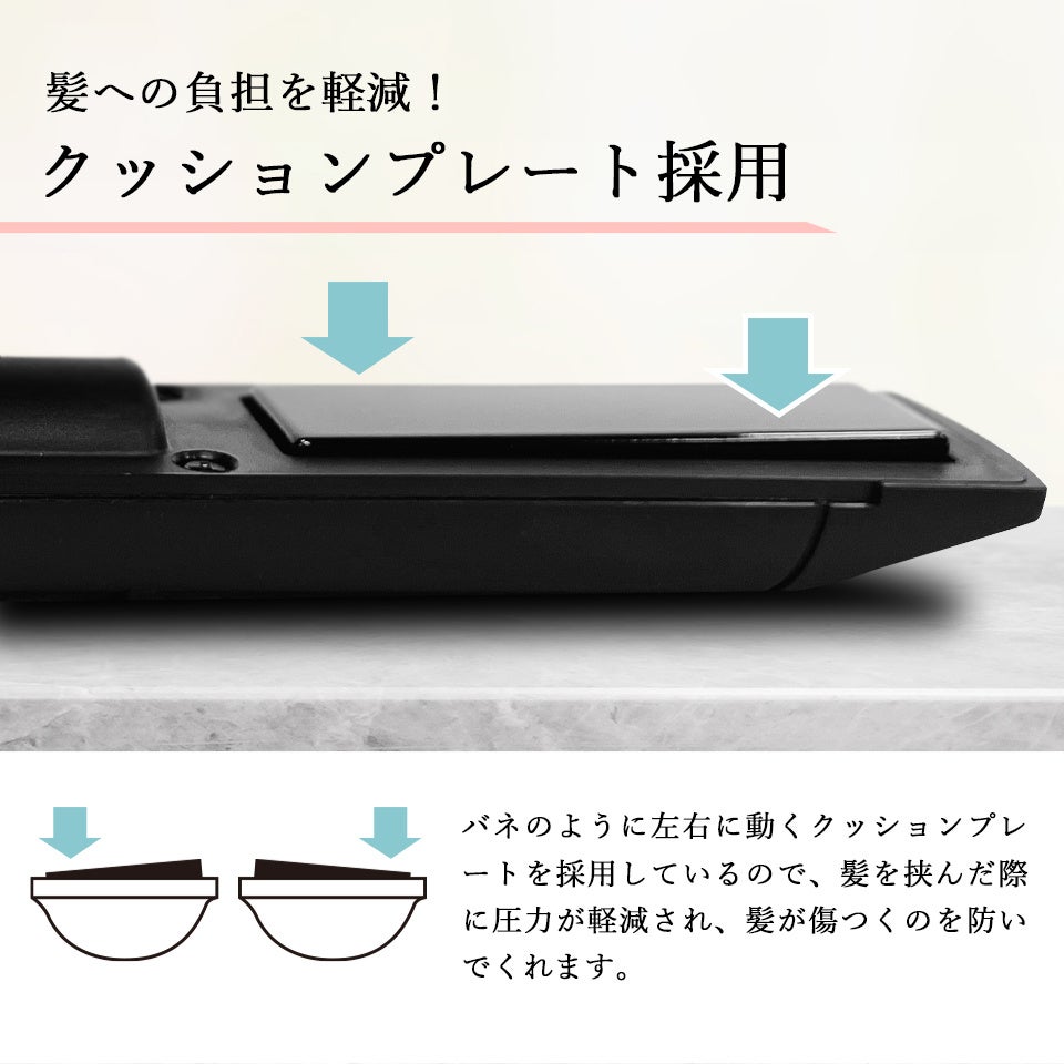髪への負担を軽減するために、バネのように左右に動くクッションプレートを採用。
