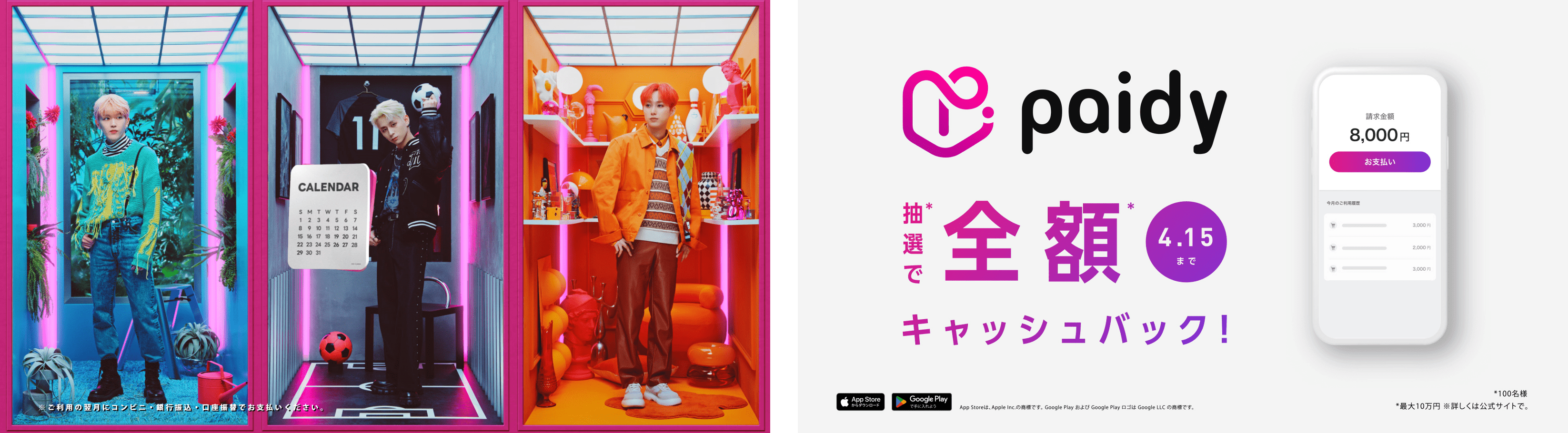 なお、CMの公開を記念して、INIのスペシャルコンテンツが続々アップされるスペシャルサイトを開設するほか、INIの限定動画が公開されるTwitterキャンペーンや、「INI×ペイディ コラボ記念キャンペーン」として抽選で100名様に当たる全額(最大10万円)キャッシュバックキャンペーンと、対象ショップで1,000円以上の購入で抽選で1万人に1,000円をキャッシュバックするキャンペーンも実施します。