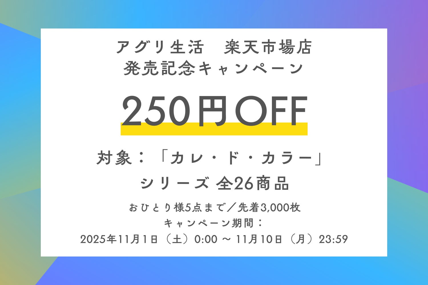 発売を記念して、楽天市場「アグリ生活」店限定のお得なクーポンを配布いたします。