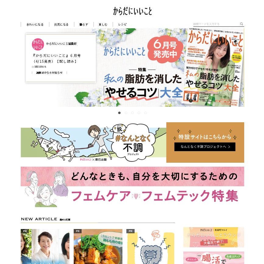 女性の心身の健康を応援する雑誌『からだにいいこと』を出版するとともに、同名のWebメディアも運営し、医師や専門家の監修のもと、「いつまでも美しく健康なライフスタイルを楽しみたい」という30代~50代の女性のニーズにこたえる情報を発信するなど、女性がいつまでも輝けるライフスタイルを提案しています。
