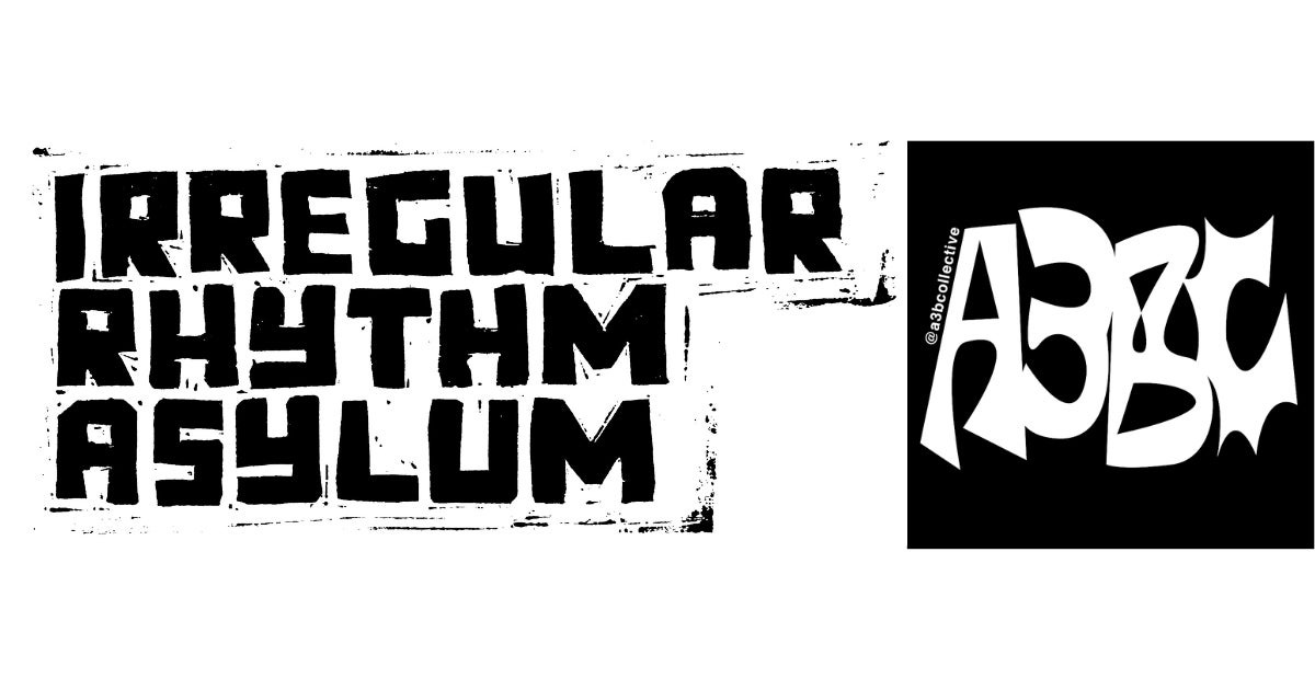 (画像左から、)新宿のインフォショップ『Irregular Rhythm Asylum』と、木版画コレクティブの『A3BC』のロゴ