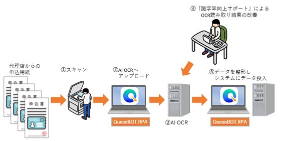 申込書の自動読取りからデータ処理、送金業務まで一貫した広範囲の業務を自動化