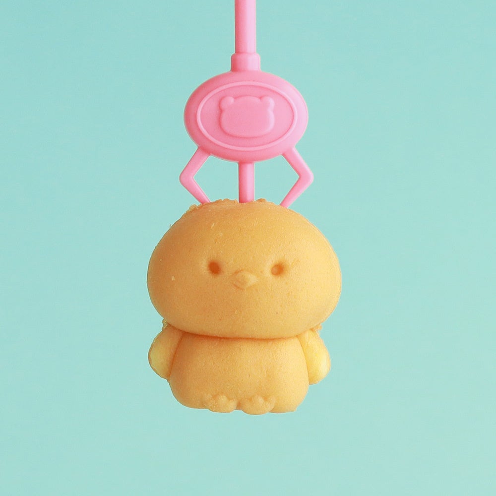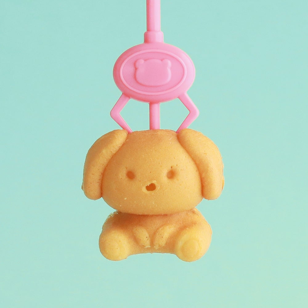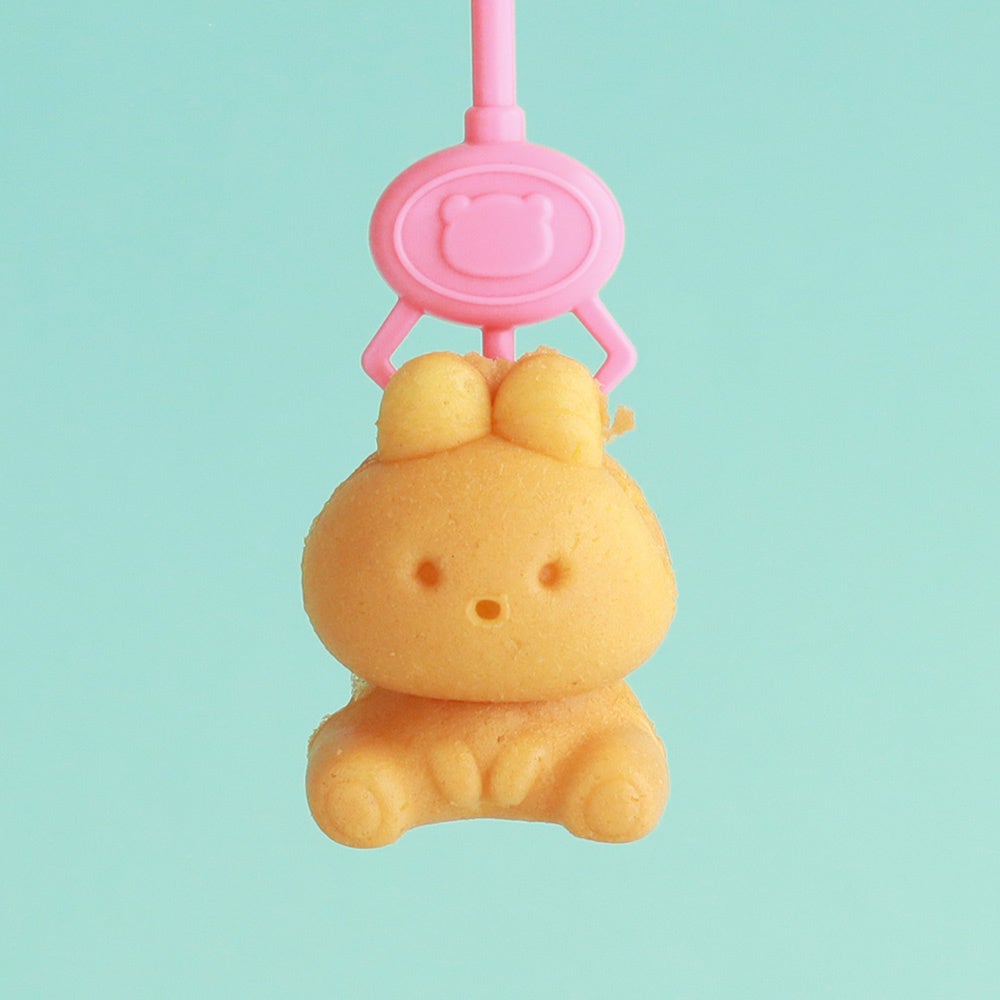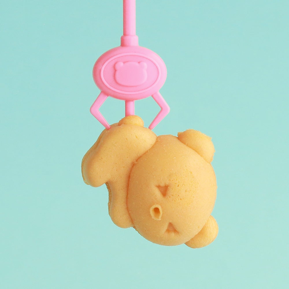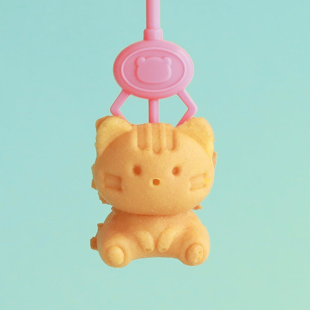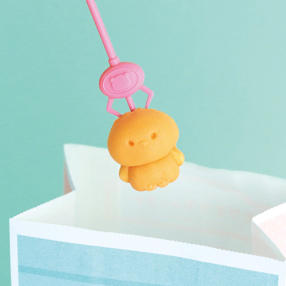 ぬいぐるみのような可愛いフォルムのベビーカステラを、クレーンアーム風のピックでキャッチしながら食べる新感覚のスイーツです。さらに、パッケージはクレーンゲーム機をモチーフにしたデザインで、見た目からも楽しく味わえます。