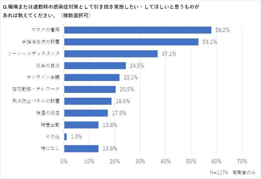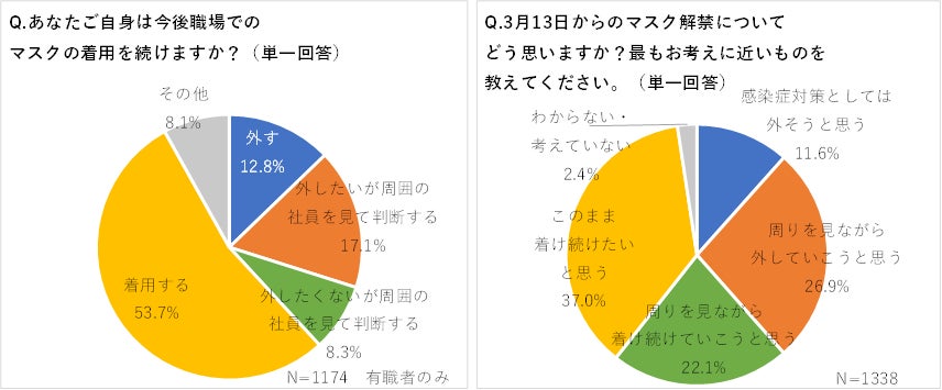 マスク解禁後、「職場で着用する」が半数以上。プライベートでの着用意識を上回る