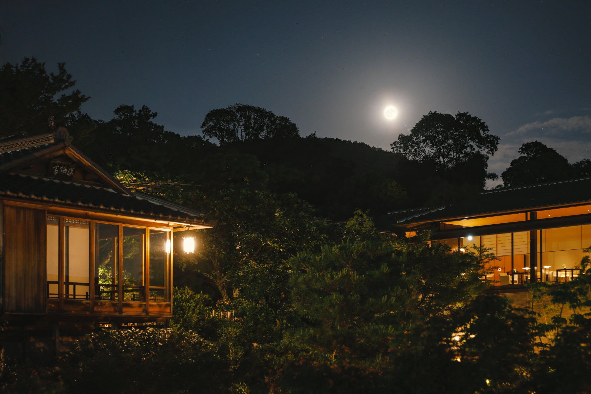 まずはパーク ハイアット 京都の宴会場「木洩陽(KOMOREBI)」にて、京大和の料理長 中島光雄(なかじま みつお)とパーク ハイアット 京都の総料理長 井料剛(いりょう つよし)が厳選した旬の食材でご用意する和洋折衷のコース料理を芸舞妓の舞をご覧いただきながらお召し上がりください。その後は「山荘 京大和」の歴史的建築物「翠紅館」を舞台に、京都に拠点を置く金剛流の若宗家である金剛龍謹(こんごう たつのり)氏による能をご鑑賞いただけます。豪快で優美な舞に特徴があるとされ、「舞金剛」と謳われる金剛流の幻想的な能の舞をご堪能ください。そして締めくくりに、中秋の名月を愛でながらお月見にちなんだ和菓子とお茶で、美しい秋の夜のひとときをお楽しみください。